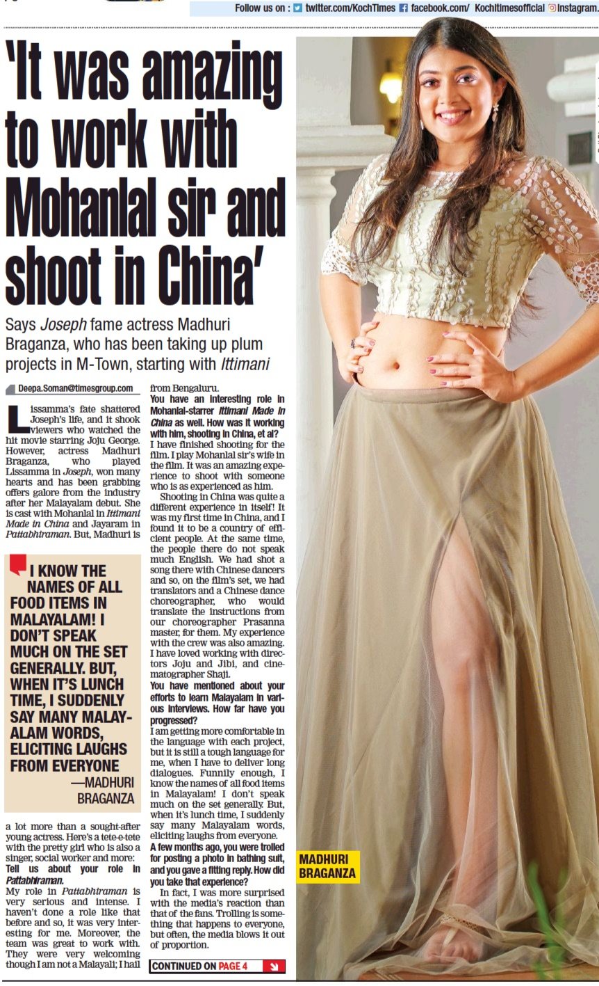 Mohanlal The Legend On Twitter Joseph Movie Fame Madhuri Braganza About Lalettan During The Shoot Of Ittymaani In China Ittymaanifunridein1month - She become popular after her performance in the movie joseph (2018).